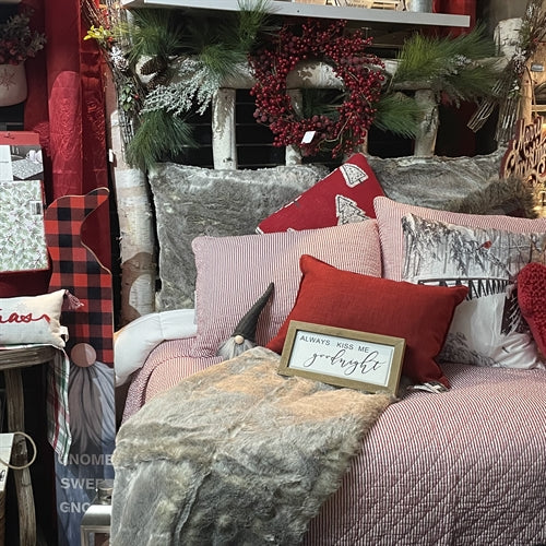 Red Ticking Custom Shaped Quilt With Shams